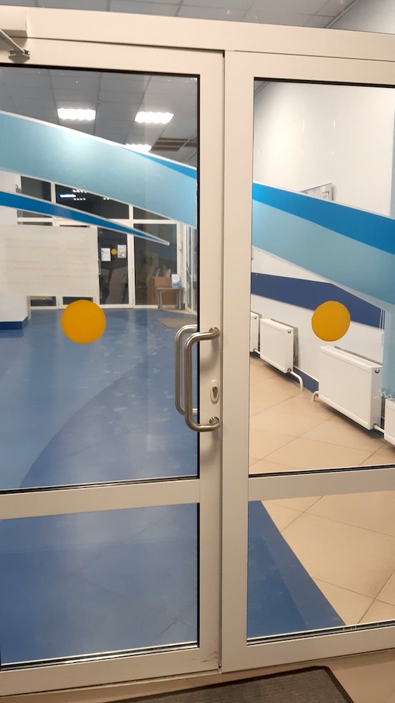 - Для инвалидов с нарушениями зрения предусмотрены напольные тактильные предупреждающие указатели перед дверными проемами и перепадами высот.